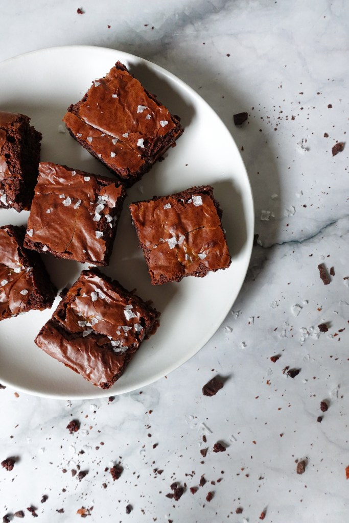 This recipe is adapted from Stella Parks’ brownie recipe. It results in that crackly, glossy top that’s the stuff of legends. Some people theorize that the crackly top layer comes from a combination of butter and cocoa butter (which comes from using chocolate instead of just cocoa). Others say it’s because of how well the sugar is incorporated- the step of whipping the eggs with the sugar allows the sugar to fully dissolve. The brownies get their structure from this whole-egg foam and chocolate: this keeps them rich, chocolatey and moist, but never pasty. Browning the butter adds a lot of depth of flavour, so the result is not just one-dimensionally sweet or chocolatey. I like to add a bit of extra flour so they’re a little chewier than hers, but the texture is still beautifully fudgy by the time they’ve cooled.